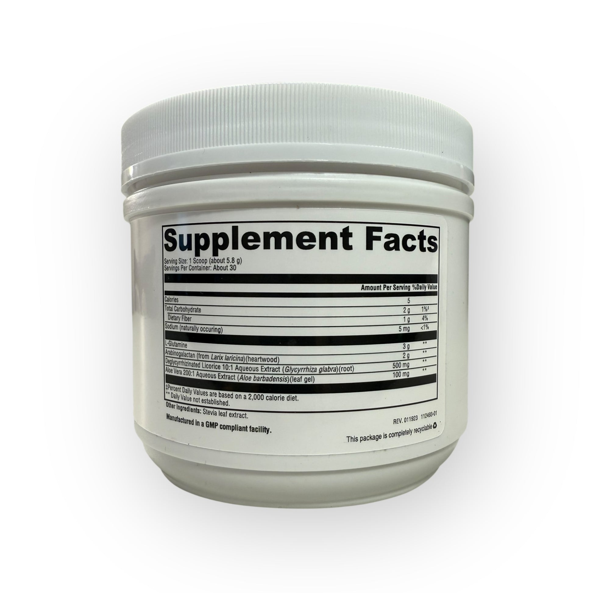 Revitalize Gut Recharge features four specialized ingredients for enhanced gastrointestinal support. This unique formula contains a concentrated extract of licorice that has been processed to remove glycyrrhizin— thus reducing risk of side effects associated with licorice. Revitalize Gut Recharge serves as the predominant fuel and nitrogen source for the mucosal lining of the gastrointestinal (GI) tract. Arabinogalactan from the North American larch tree is a naturally occurring polysaccharide that provides excellent support for GI health. Research suggests that arabinogalactan plays a role in the promotion of gut microflora and may increase beneficial short-chain fatty acid production. The Aloe vera leaf extract in Revitalize Gut Recharge has been processed to remove the bitter principles and prevent a laxative effect.*