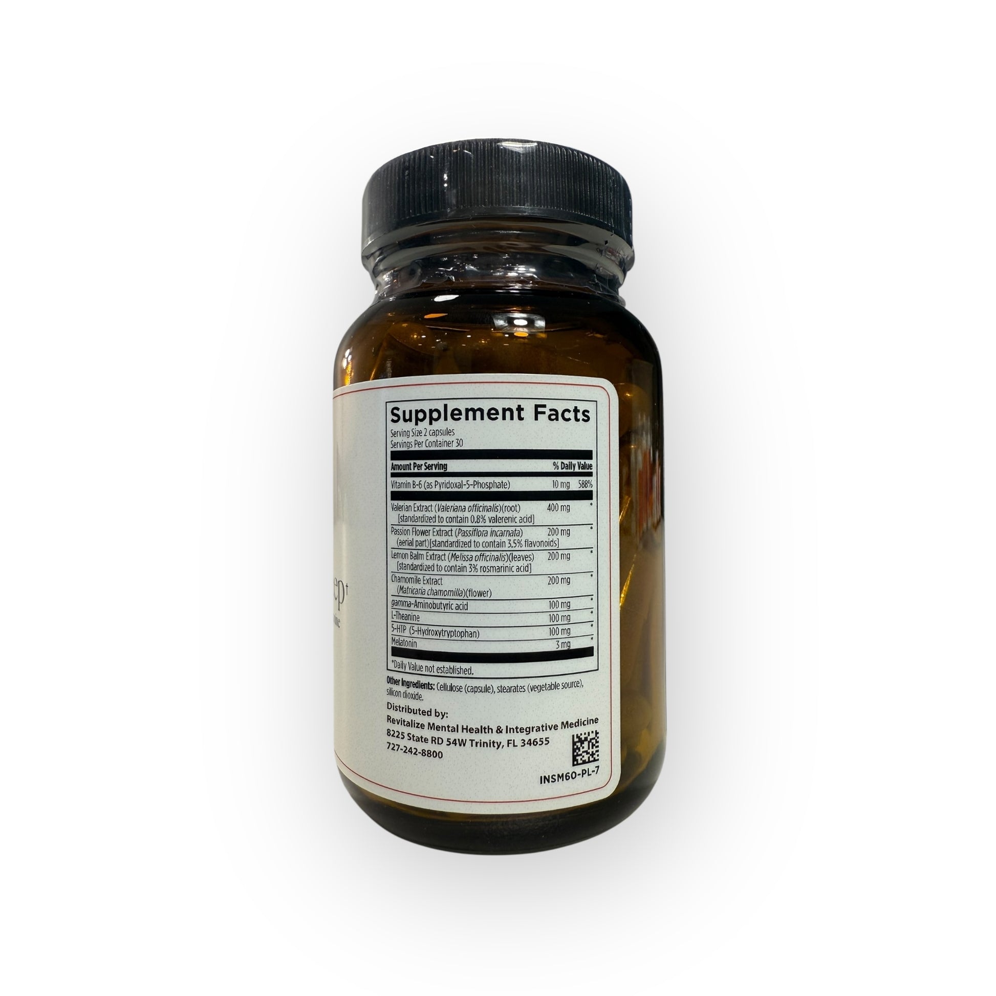 Revitalize Stay Asleep is a blend of botanicals, nutrients, and neurotransmitter precursors designed to support quality, restful sleep.* By providing nutritional support for calm brain activity, Revitalize Stay Asleep helps promote the body’s natural ability to fall asleep and stay asleep. Key ingredients include botanicals that support nervous system function, PharmaGABA® (a proprietary form of gamma-aminobutyric acid [GABA]), L-theanine, melatonin, 5-hydroxytryptophan (5-HTP), and pyridoxal-5-phosphate (the activated form of vitamin B6).